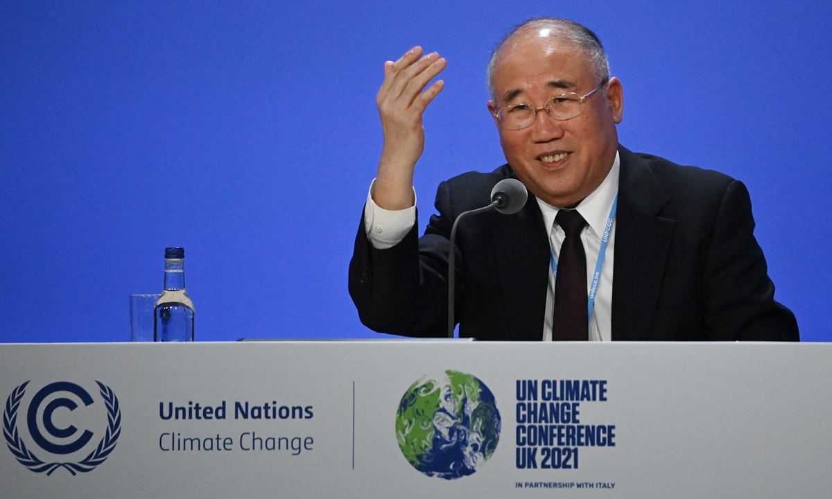 China's Special Envoy for Climate Change, Xie Zhenhua speaks during a joint China and US statement on a declaration enhancing climate action during the COP26 climate change conference in Glasgow on November 10. Photo: AFP